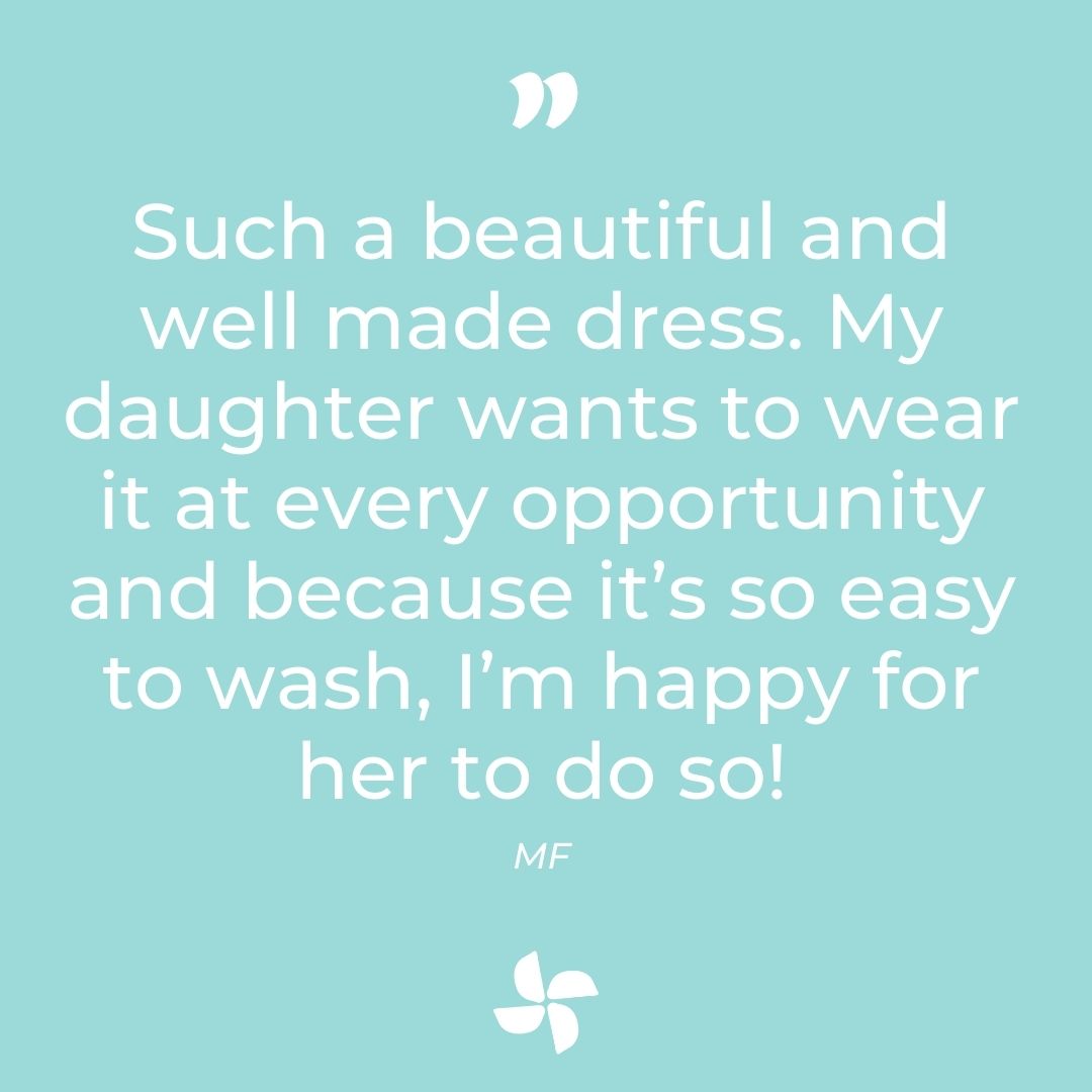 This is my daughter’s third My Twirl dress and like the others, it is beautiful as well as practical! She loves wearing it because it’s soft and twirly and I love it because she looks lovely in it and I don’t have to iron it after I wash it! Happy little girl and happy Mummy!