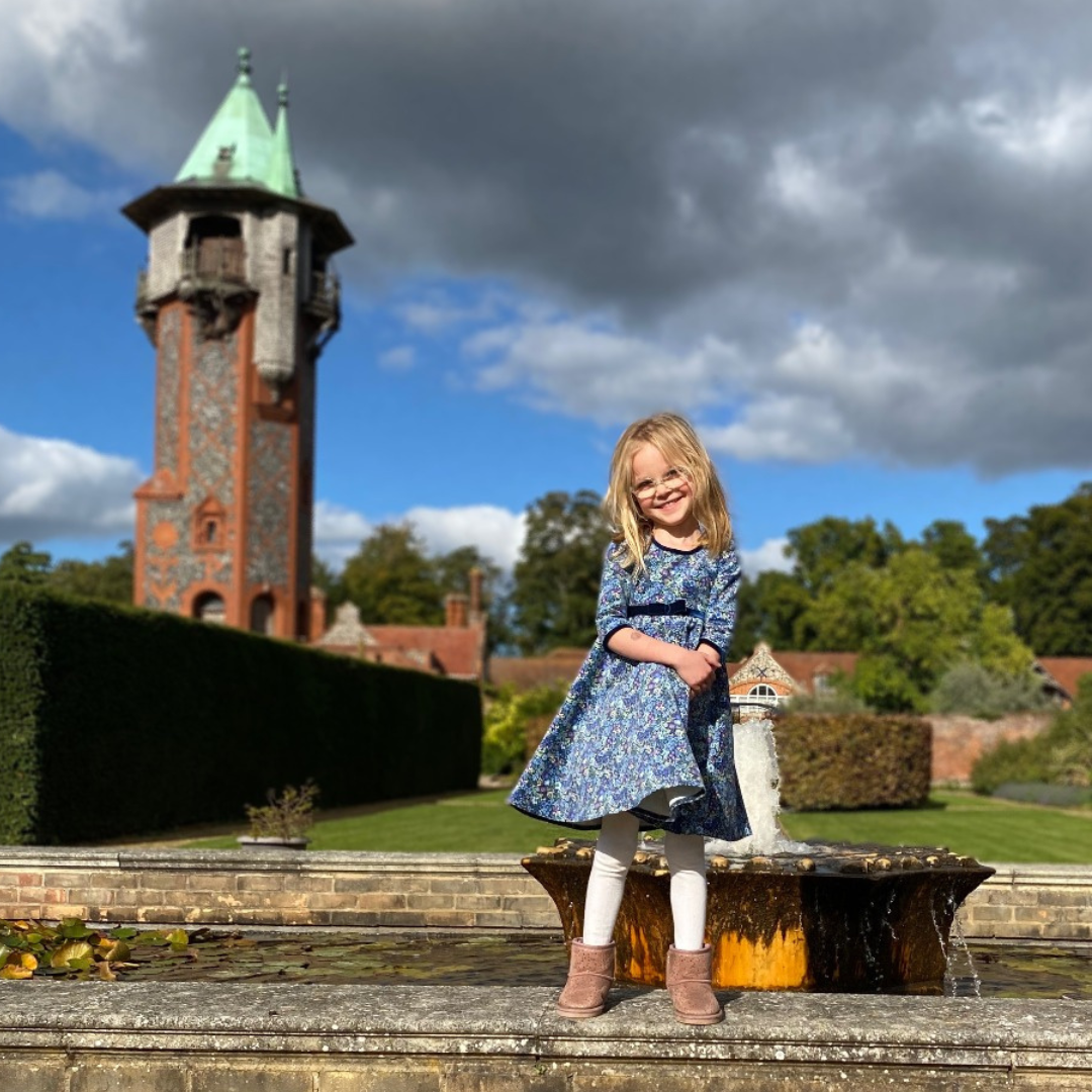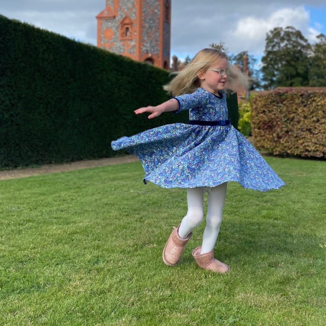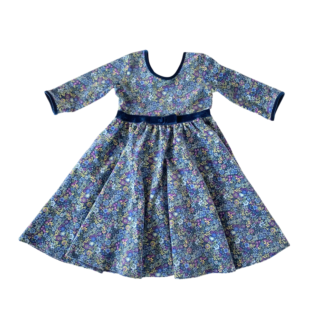 FREE UK DELIVERY & RETURNS Posy is a pull-on 3/4 length sleeve girl's blue flower dress made from stretch petite corduroy with velvet trim...soft and plush to the touch. With it's stunning flower detailing, Posy is the perfect choice for that dress to take her back to school and through the holidays! With 3/4 sleeves this is an all season favourite. Complete the outfit with the Charlotte Blue coat - click to view Charlotte. Designed for magical everyday wear with machine washable and breathable petite corduroy. Composition: 98% Cotton 2% Spandex (exclusive of decoration) FEATURES